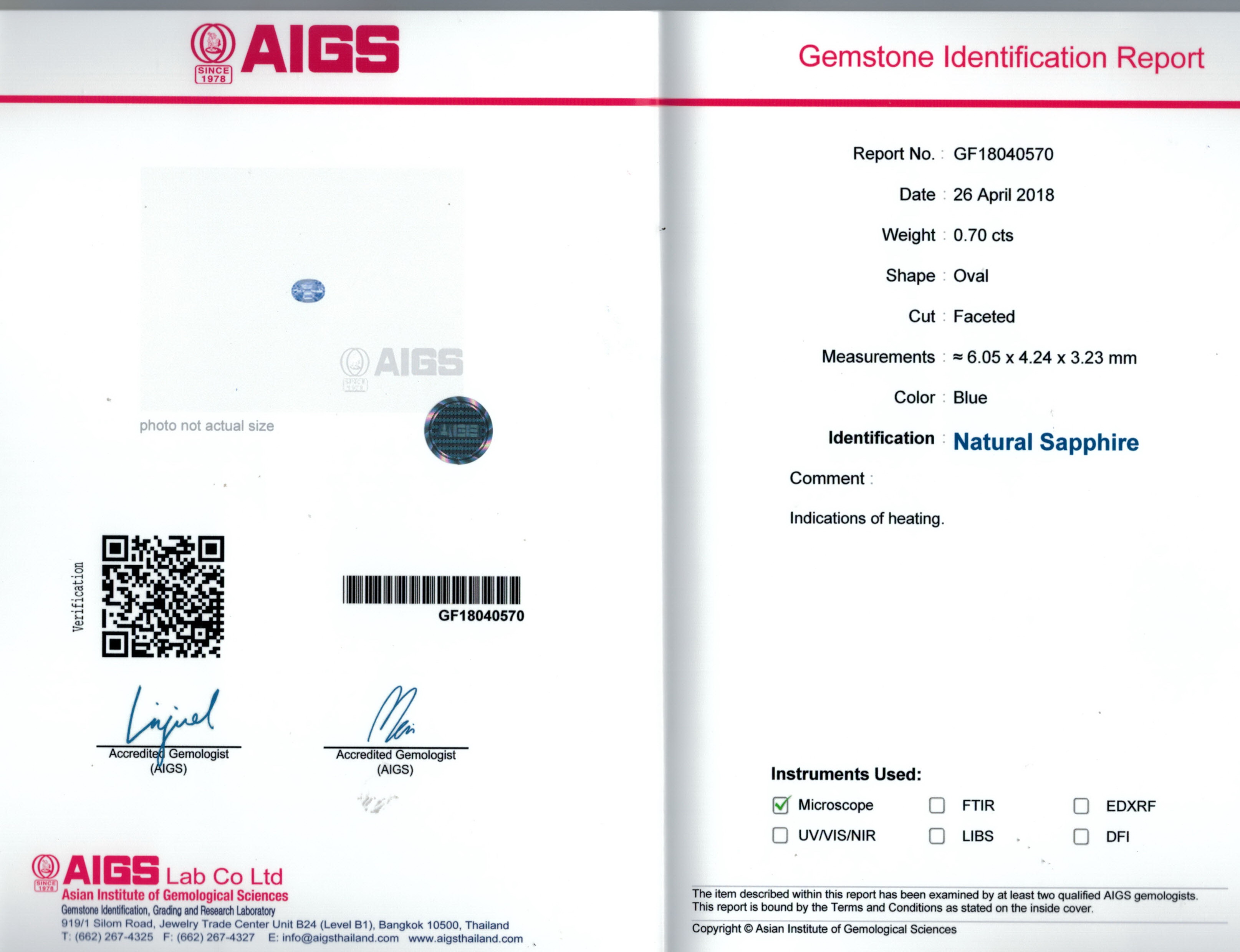 AIGS report No. GF18040570