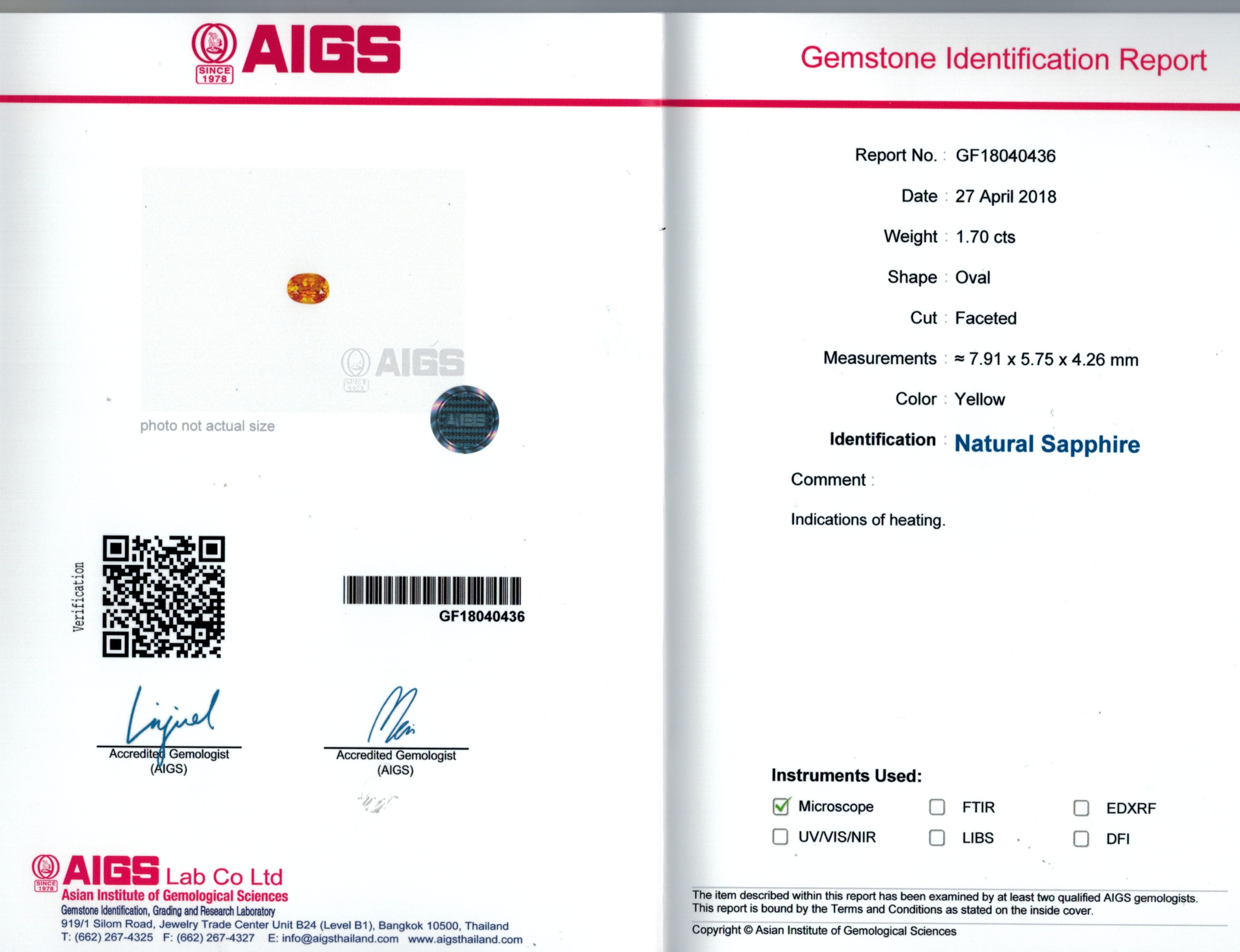 AIGS report No. GF18040436