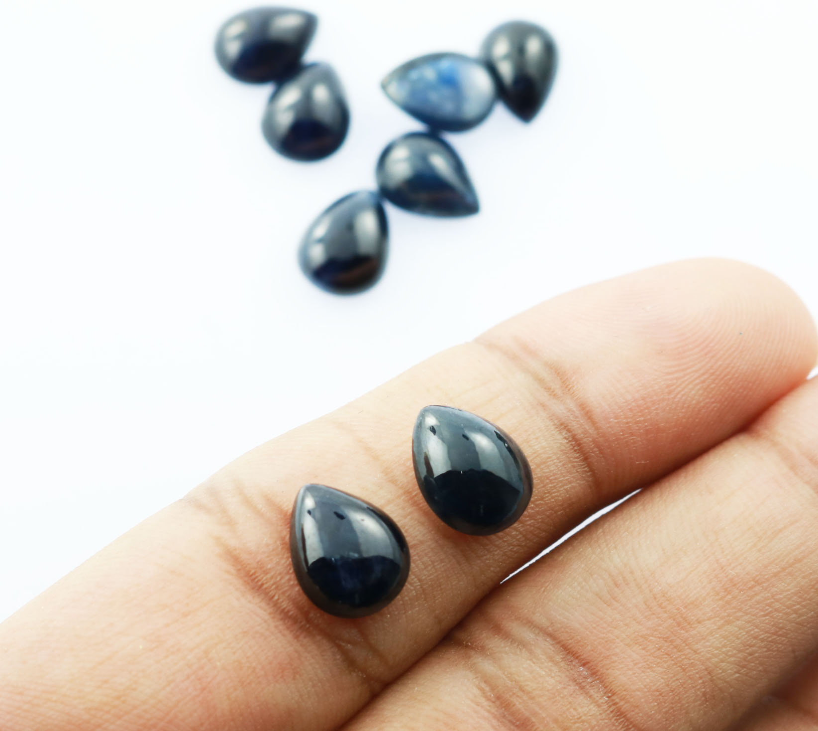 Sapphire Cab Pear 9 x 7 mm.
