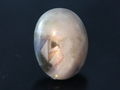 这是一个较为扁的托帕石水晶球来自于抹谷缅甸。这个结构和里面的包裹体允许你对其内部进行研究。里面可以看到彩虹般的荷叶包裹体、白色吸管样的包裹体、平行的针状包裹体、以及指纹和薄薄的面纱包裹体,非常值得研究学习。