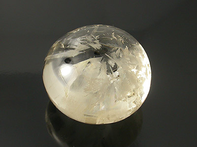 Like a flatter version of a ball, this topaz from Mogok allows you to go deep inside the "sphere" and examine its inner world. An iridescent "lily pad" inclusion, white "straw, pointed "brush", parallel needles, fingerprints, thin veils are all inclusive for your study.