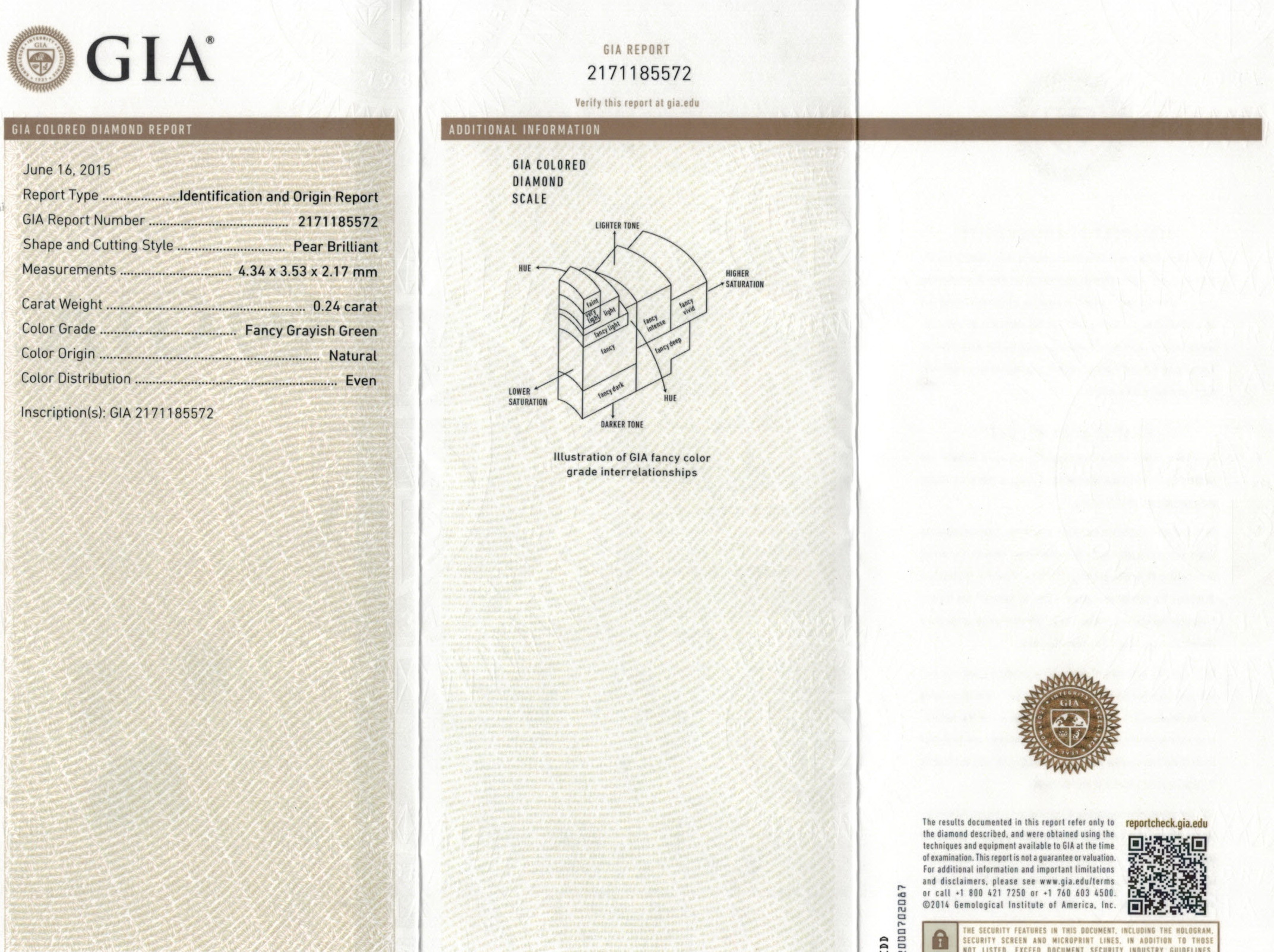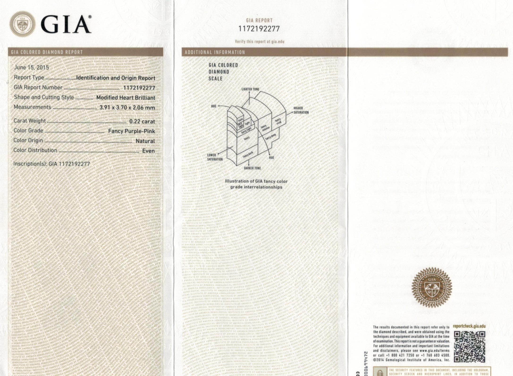 Natural Fancy Purple-Pink Diamond 0.22 cts (GIA certificate #1172192277) and Natural Fancy Grayish Green Diamond 0.24 cts(GIA certiticate #2171185572)