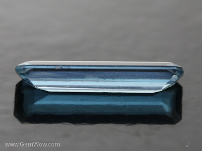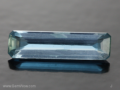 A longish light bluish green faceted octogonal apatite from Burma. This is one of the few stones left in our stock. To the best of our knowledge the source has been depleted for a few years and we don't see it offered in the market. Also known as "kling" apatite in reference to the "kling" sound you get when the stone is dropped on a glass surface. Marked at a very reasonable price, this piece is a bargain.