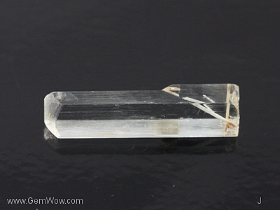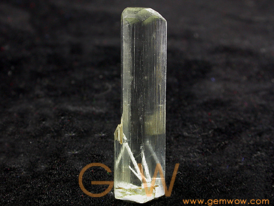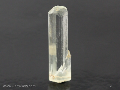 Here is a nearly colorless columnar beryl crystal. This stone has nicely formed faces and great transparency. It terminates with a pinacoid face sitting on top of a somewhat chisel looking series of faces. A fine stone to look right through!
