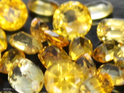 25 lovely pieces of yellow sapphire in different shades but mostly in a warm charming honey-like yellow color. A few showing champagne –like color or a bright yellow with absent of any brownish tints. A part of them disclosing some color zoning but without losing the attractive look, due to the good executed cut and the fine finish. The vary in shape, so you will find mostly ovals and pear cut as well as two brilliant cuts. The clarity of this lot is excellent and the brilliancy is mostly very fine and just completes the overall very charming appearance. This parcel has been heated by traditional Thai heat enhancement method without the addition of light elements.