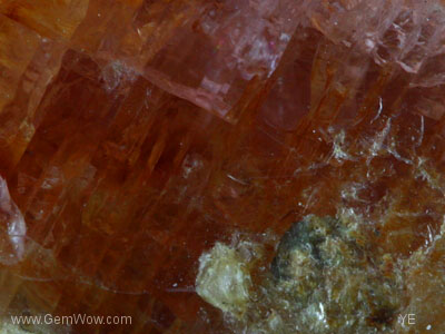 A ruby crystal from Burma. This proud piece has still some calcite crystals attached, where the rubies are typically found in Mogok. The most of the prism faces of the ruby are well developed and showing some very nice luster. You easily can see a lot of bohemite needles intersecting at 60 degrees as well as polysynthetic twinning throughout the stone. The color is orangey-brown to light pink and the clarity is apart from some parts at the surface translucent. Also the calcite has a distinctive shape and small mica crystals are imbedded as well. A beautiful natural assemblage and a great collector’s item. SE |