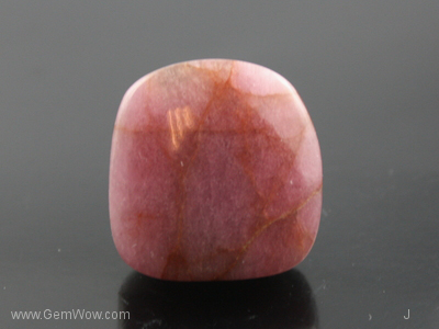 Pink body translucent to opaque, brown veins, square shoulders, fibrous sides, dark bottom, looks like Indian Mysore Ruby. Not bad price! LA/April 17,2011