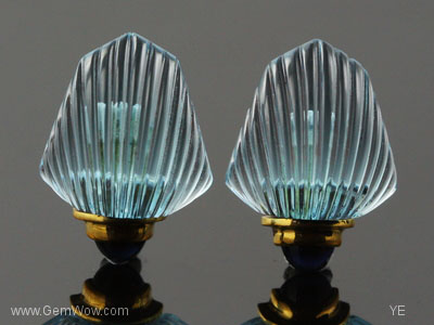 Pair of Blue Topaz Seashell Carvings 蓝托帕刻面贝壳一对儿