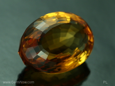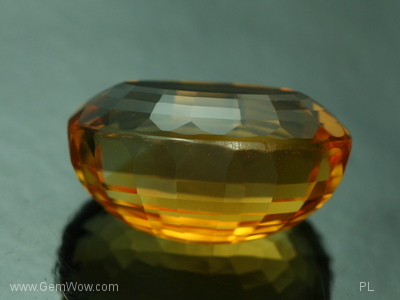 This is a rich yellowish orange fancy cut citrine oval. It measures approximately 15x21mm and weighs 26.61 carats. This stone displays some color zoning, but is clean of inclusions. It has been cut with some brilliance and has a window in the center. A nice choice for a pendant. This stone is selling at $12.40 per carat for a total of $330. [DB]