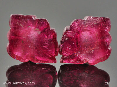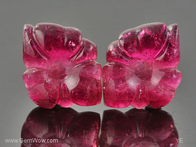 Carved Rubellite Tourmaline "Flower" Earrings