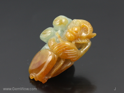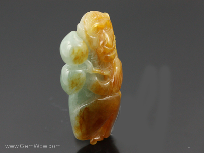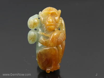 Wise like a Monkey. Medium yellow brown jadeite monkey holding two Chinese plums. Give this as a gift to those who were born in the Year of the Monkey!