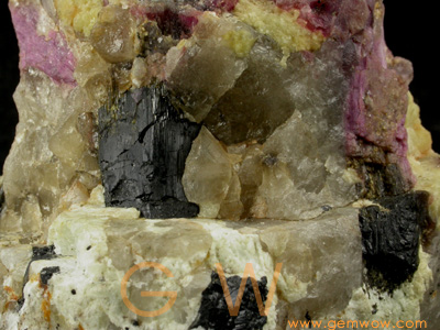 一个很漂亮的碧玺矿物标本。这个标本包含蘑菇碧玺,长石矿物和水晶矿石的组合。