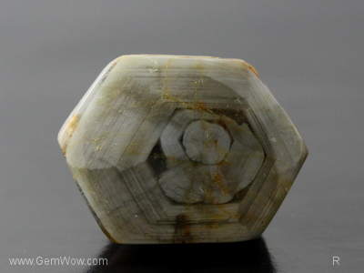 Unique Hexa Silver Honey Green Sapphire Cabochon