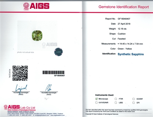 Synthetic Green-Yellow Sapphire (Study sample for the gemologist)