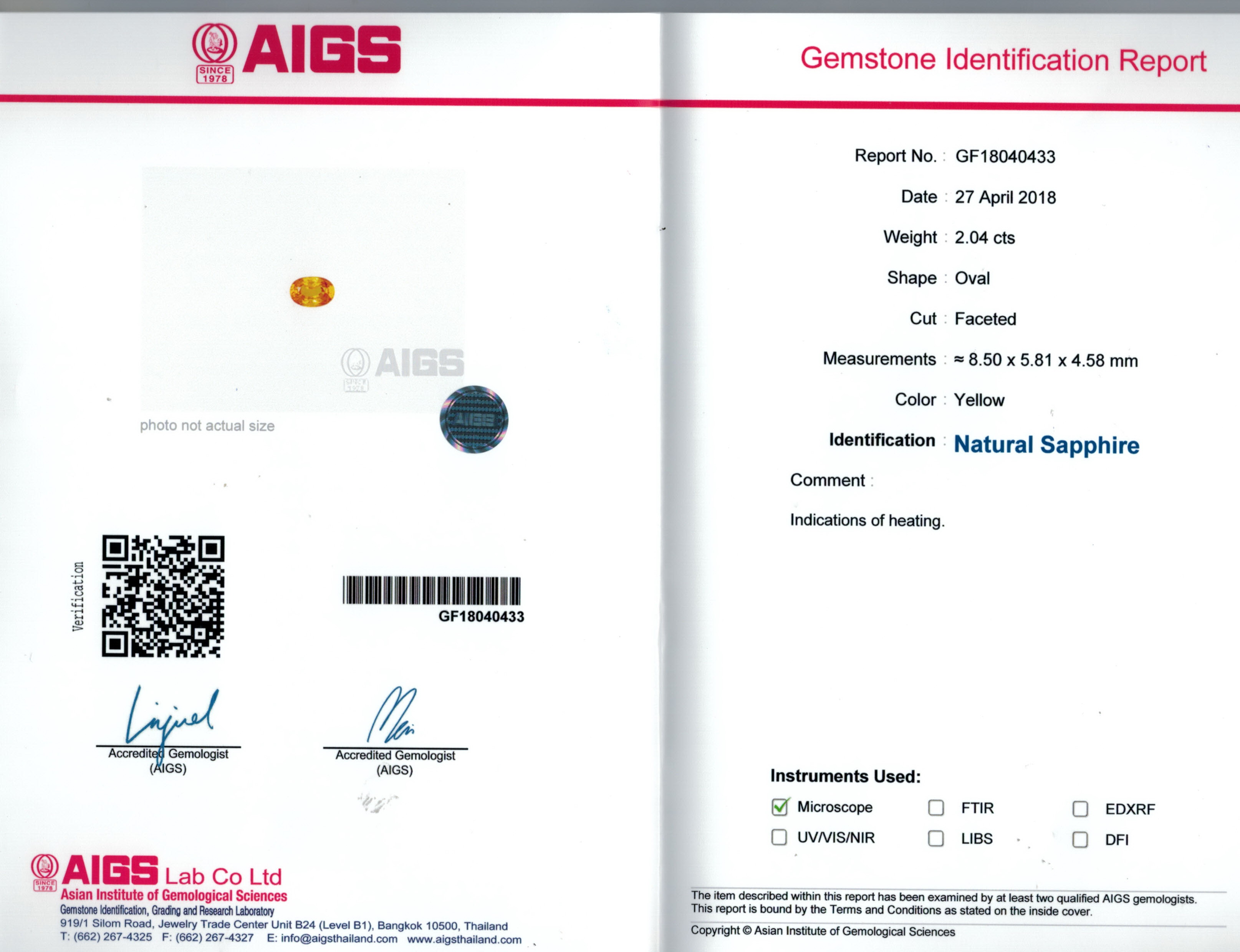 AIGS report No. GF18040433