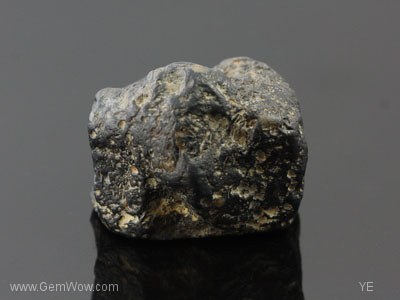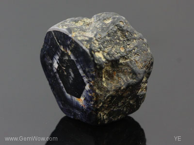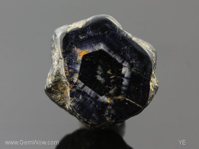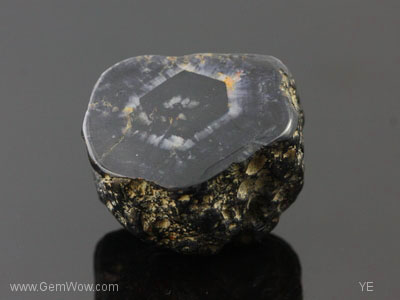 The back side looks like a non-descript metorite - black and nodular. The "face" however has a black hexagonal center with and white ring with radiating edges surrounded again with a black perimeter. The black appears to be dark blue under strong white light examination. The polish has a high shine and there are layers of "silk" giving the stone a nice "sheen". Hey! It's not called the "Great Eye of Burma" for nothing!