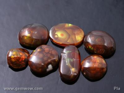 ไฟร์ อะเกต 7 ชิ้นแต่ละชิ้นจะมีรูปทรงและลวดลายที่แตกต่างกันไป