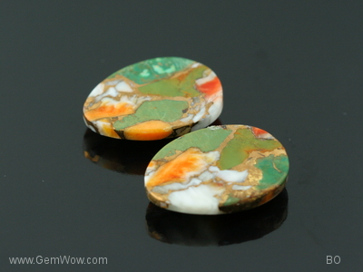 Enhanced Spiny Oyster Shell with dyed green Turquoise and Bronze infusion Arizona