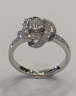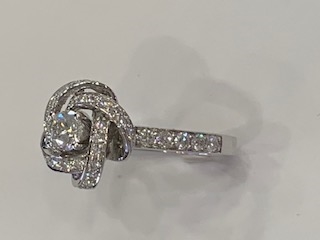 Beautiful bow ribbin ring in 18K white gold with pave diamond t.w. .75 ct