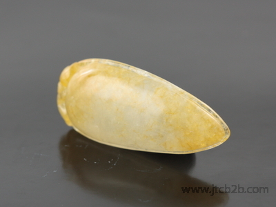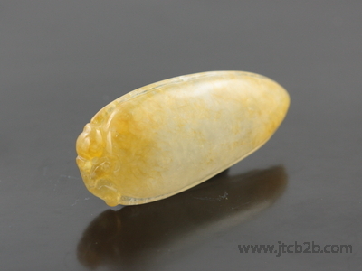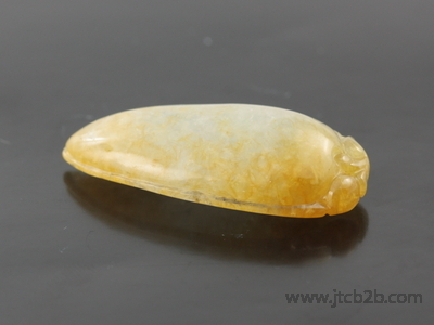 หยกเจดไดร์ทแกะสักเป็นรูปผลไม้ มะม่วงสีเหลืองสวย เหมาะแก่การนำไปทำเป็นจี้ห้อยคอ |