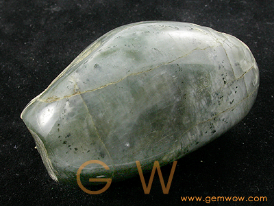 A fine feldspar crystal. Because it was polished, this piece displays a silky grey color. A nice specimen.