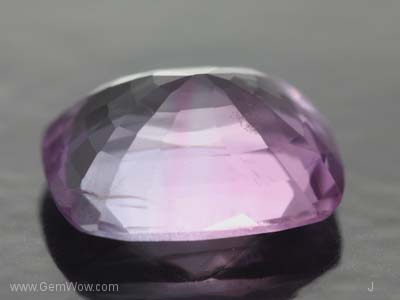 This very attractive purplish pink bi-color like Burma spinel has a "steely" tinge. It is an uncommon color and the piece is very eye clean. It has two beautifully formed "insect wing' inclusions adding to its charm and attraction. The high refractive index (optical density) of spinel gives the gem a diamond-like brilliance. The cutting is on the shallow side giving the gem a "big spread" while showing good symmetry and balance. A prefect ring stone for guy or girl!